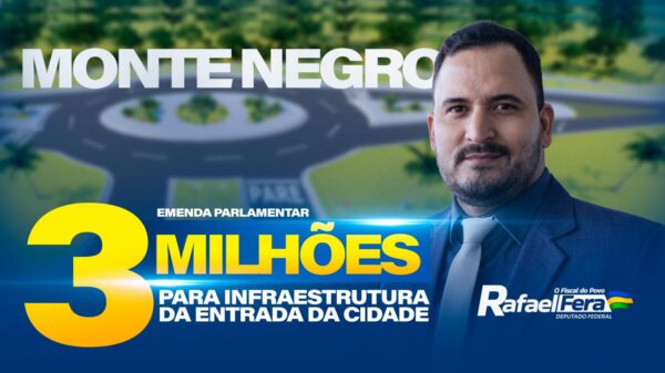 porEi Rondônia28 de janeiro de 2026O deputado federal Rafael Fera garantiu a destinação de R$ 3 milhões em emendas parlamentares para o município de Monte Negro, em Rondônia....