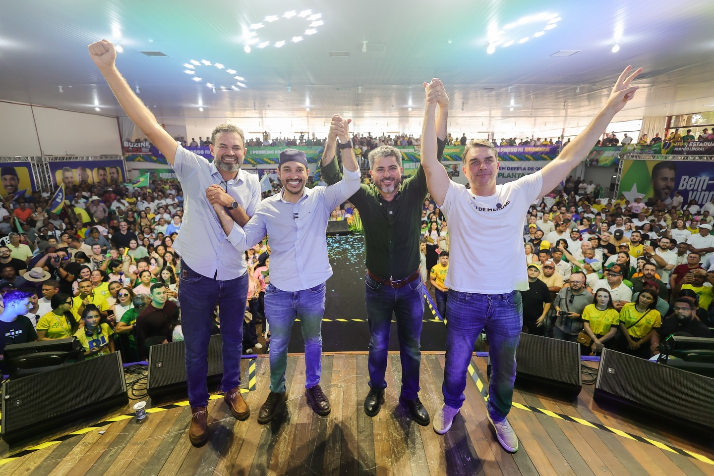 O evento contou ainda com a presença do senador Flávio Bolsonaro, que é apontado como pré-candidato à Presidência da República, reforçando o peso político do encontro.