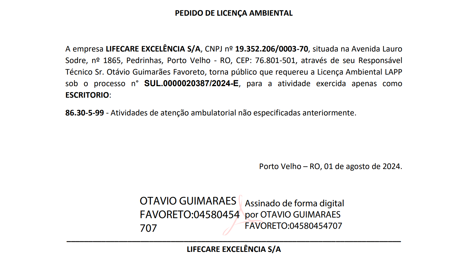 Pedido de licença ambiental